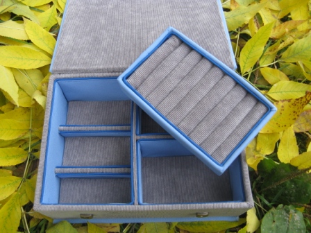 В этот раз чуть "усовершенствовала" отделение для колец. Вместо паралона использовала бигуди из Фикс-Прайса. Результатом более чем довольна.