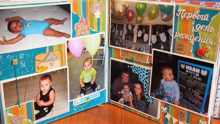 Альбомы ДетскиеСпасибо этому сообществу - я, наконец, доделала альбом первого года для сына. Осталось только заполнить теги. Первый опыт - он и есть первый.. И с учетом моего врожденного рукожопия, неаккуратности и отсутствия терпения..но все же я смогла довести дело до конца. В начале работы я искала тут именно варианты первых работ (ибо альбомы опытных мастериц у меня вызывали благоговейный трепет и ощущение полного бессилия))). Поэтому в итоге решила тоже поделиться своим творением, чтобы, возможно, подбодрить таких же новичков.