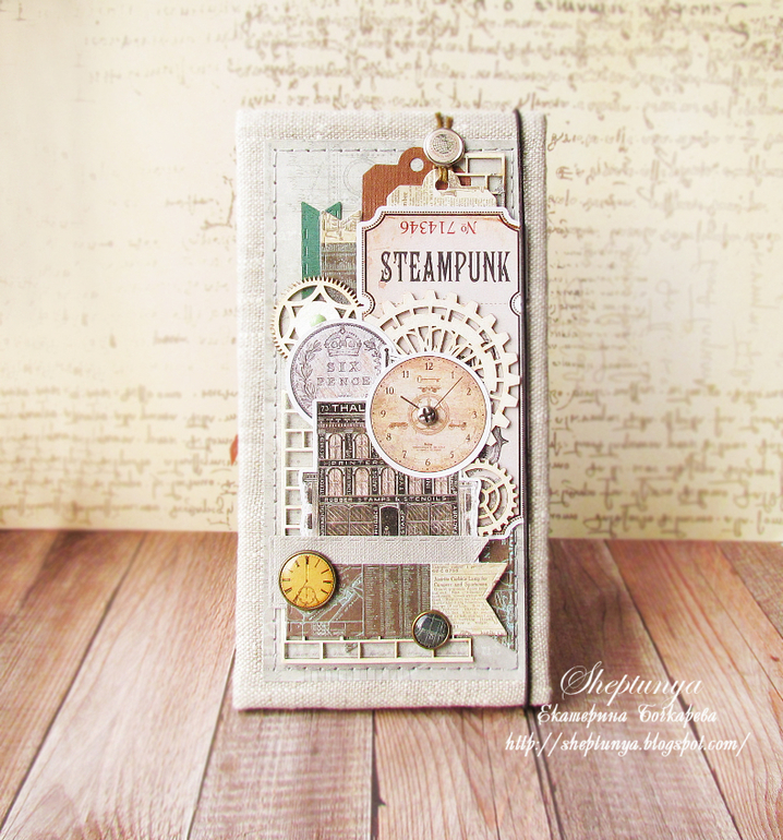 Хочу показать вам мужской конверт в тканевой обложке, немного стимпанк:)