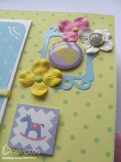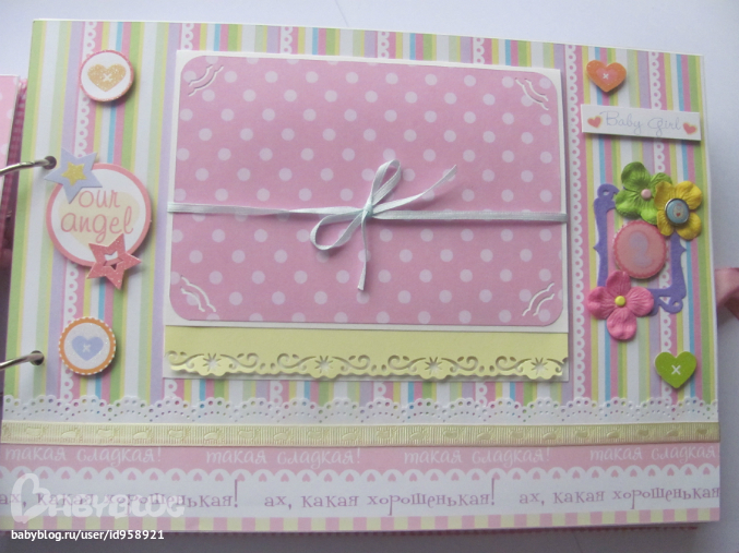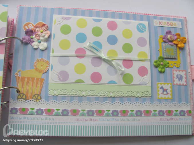 Восемь разворотов: первый разворот с двумя кармашками - можно положить браслетики из роддома , а во второй кармашек - локон.есть место записта А4и метрики малышки,место для 3 снимков из роддома