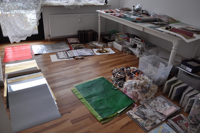 Ну в общем хотелось поделиться самым началом работы над зимней коллекцией. Было бы здорово увидеть как и другие собирают материалы, чем вдохновляются. Много писать не буду, так как уже написала это в дневнике см. ссылку. Но фото выложу. Мой муж называет это " опять надо ходить по тропе" . Это первая неделя, Потом я все разложу. Но сейчас надо видеть к какой бумагу что подходит и поэтому держу все перед глазами.