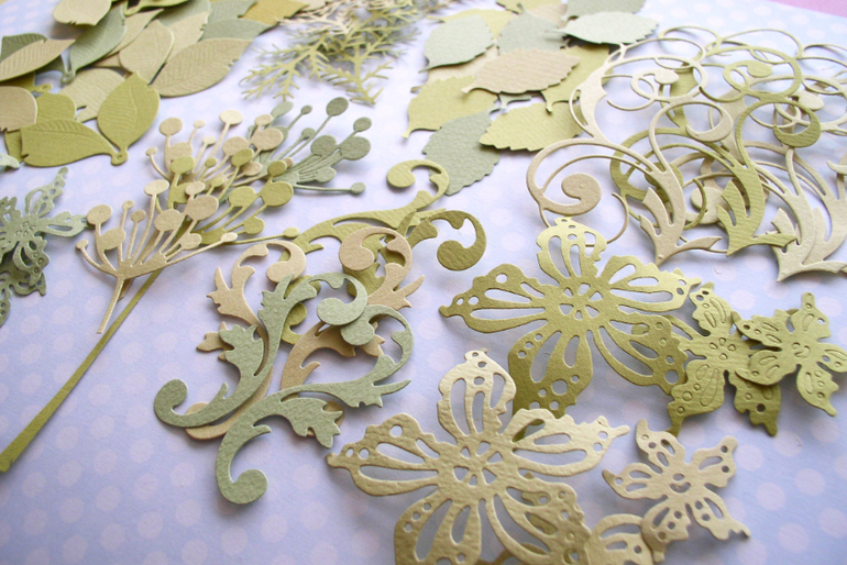 2. Растительный набор из акварельной бумаги и кардстока всего 76 элементов 400 рублей ПРОДАН