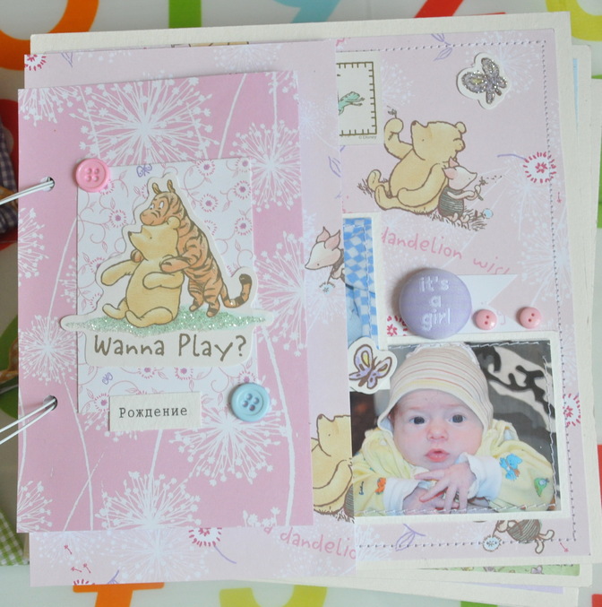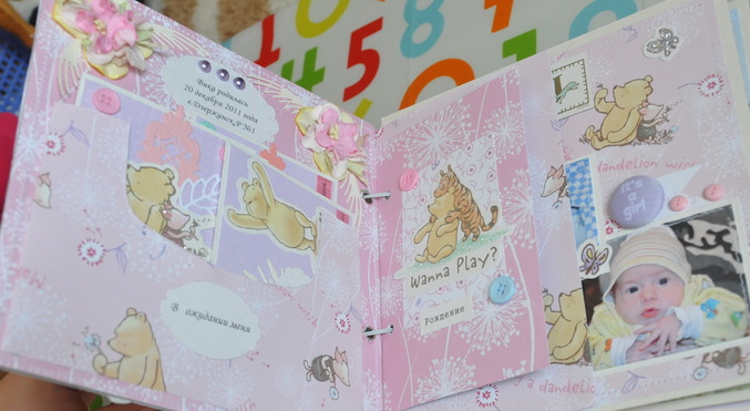 Альбомы ДетскиеВсем привет!!!)я наконец-то доделала альбом для моей дочки!!!!эх..скажу вам не простое это дело делать для себя..то одно..не так..то это не нравится......Долго выбирала для дочиного альбома материалы,решала.....пришла бумага...не пришли украшения а когда все в кучу лежало в моей копилке...снова возникла задача..набор то заказала не весь а половину....да и воообще он такой..такой яркий..а я хотела в нежняцких тонннах..но моя страсть по Вини пуху пересилила ...и он готов... и так смотри..фоток ОЧень много причем показываю с фото виновницы альбома)))