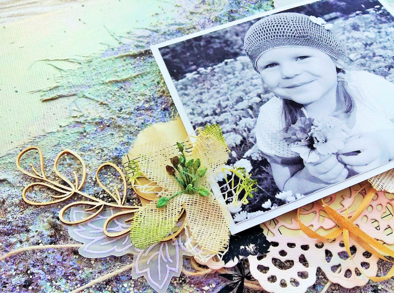 Холст на подрамнике размером 23,5х17,5см,, использованы акриловые краски, грунт, текстурная паста, "посыпушки", глитер, вырубка, эмбоссинг и др. материалы премиум класса.
