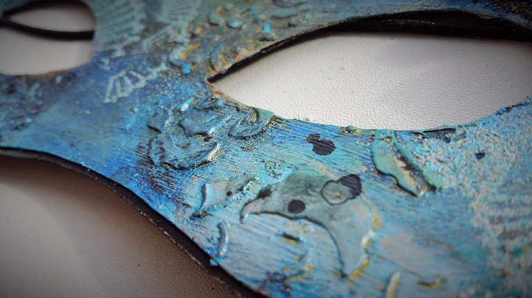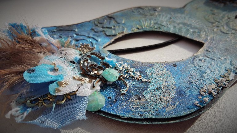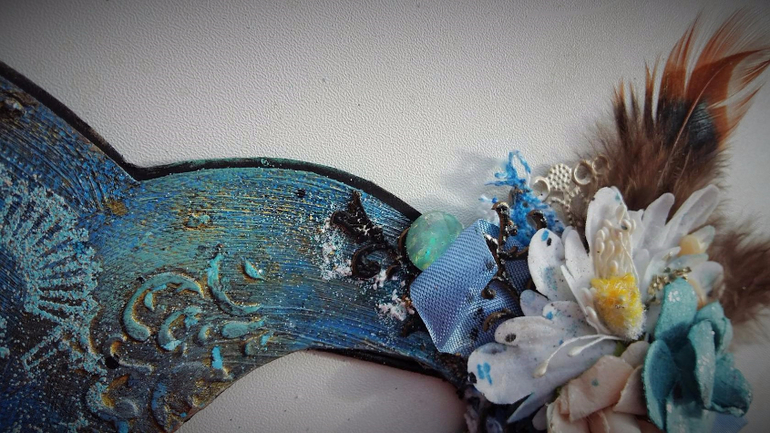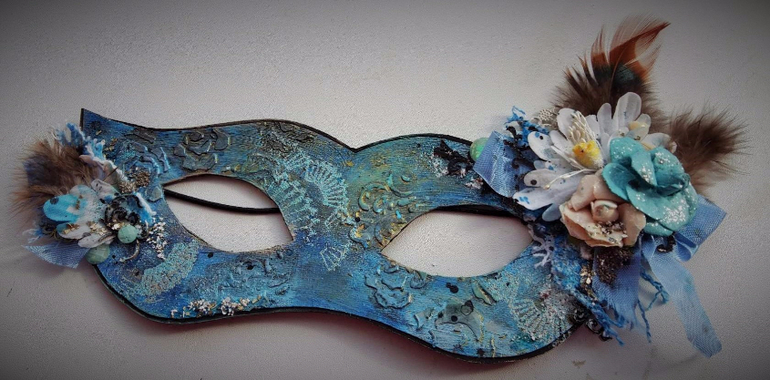 Заскрапить можно ВСЁ! (альтерскрап)Привет! А у вас такое бывает, увидели палитру и влюбились? Со мной именно так и случилось))) В блоге Доступный Скрап очень вдохновляющая палитра... Такая загадочная синева с мерцающим блеском на центральном фото... и такие грациозные перья... А тут еще дочке в школу надо маску сделать, вот звезды и сошлись)))