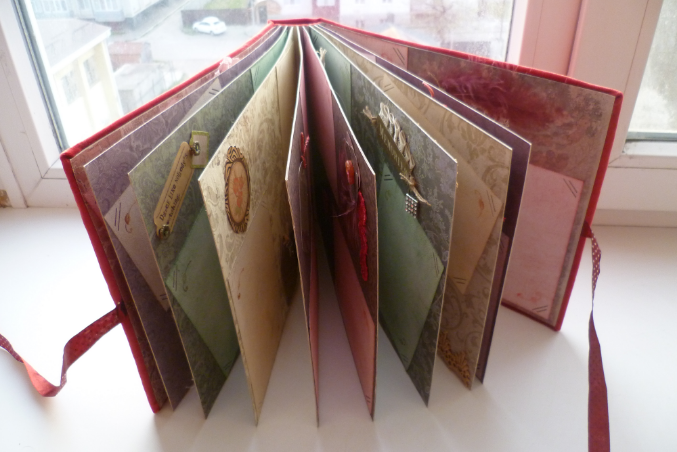 Альбомы для женщин (девушек)Альбом в подарок тёте. Делала почти месяц, намучалась я с ним. Надеюсь ей понравится, и мои старания не пройдут даром. Альбом: 24*30, обложка веллюр + синтепон, 8 листов, 9 разворотов, вмещает 36 фото 10*15. Переплет Виноградовой.