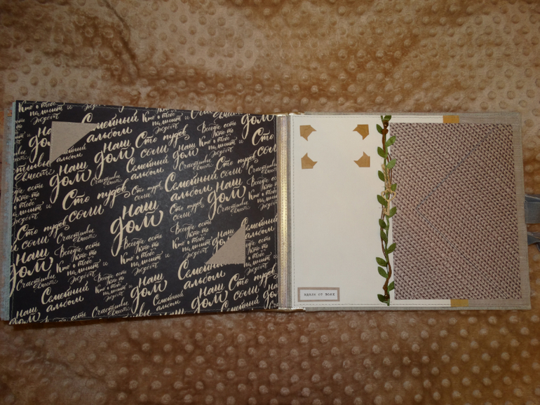 Обложка лён, покрашена акриловой краской, этой же краской покрыт и чипборд.