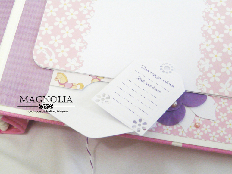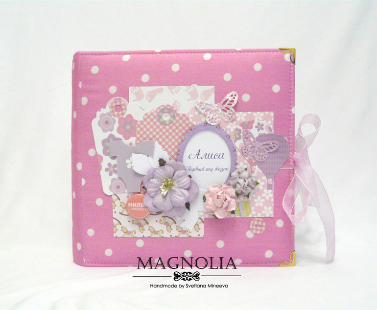 Сегодня я с детским альбомом для малышки Алисы. Формат 20*20 см, объемный бумажный переплет укрепленный тканью, обложка мягкая тканевая из хлопка. Завязывается на шифоновые ленты. В альбоме 8 разворотов или 16 страниц, вмещается 74 фотографии формата 10*15 см.
