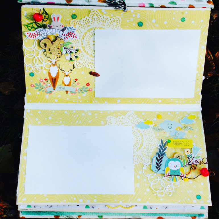 Хочу показать вам альбом, который я сотворила из замечательной коллекции "Лесные друзья" от Scrapberry's. Альбом сделан в виде сумочки, очень удобен для хранения и вмещает в себя более 50 фото 10*15 на 9 разворотах (18 страниц). Возможно добавление индивидуальных надписей и печать ваших фотографий.