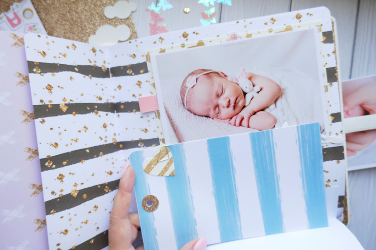 Работала над альбомом для малышки). Родители хотели обязательно белую обложку, воздушный шар и метрику))).