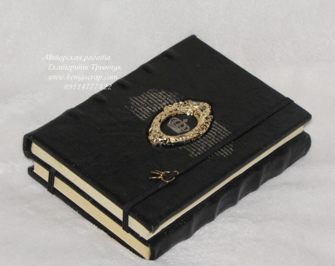 БлокнотыДавно хотелось сделать такую ,и вот вчера я наконец ее осилила)) Это книжка-перевертыш.Одинаковая с обеих сторон.Формат А5.Обложка-натуральная кожа темно-зеленого цвета,листочки состарены в кофе.Каждая книжица закрывается на резиночку.Переплет на шнурах.Украшение-гипсовая рамка,покрытая поталью, бронзовое тиснение, ключики.
