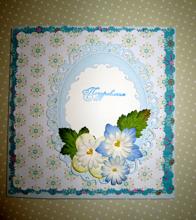 Привет!)) Я новенькая на форуме и в скрапбукинге. Долго рассматривала ваши замечательные работы, и наконец дозрела до своей))) Сделала подруге в подарок открыточку. Вечно панически боюсь переборщить, по этому украшений маловато. Может быть что-то добавить? критика приветствуется)))