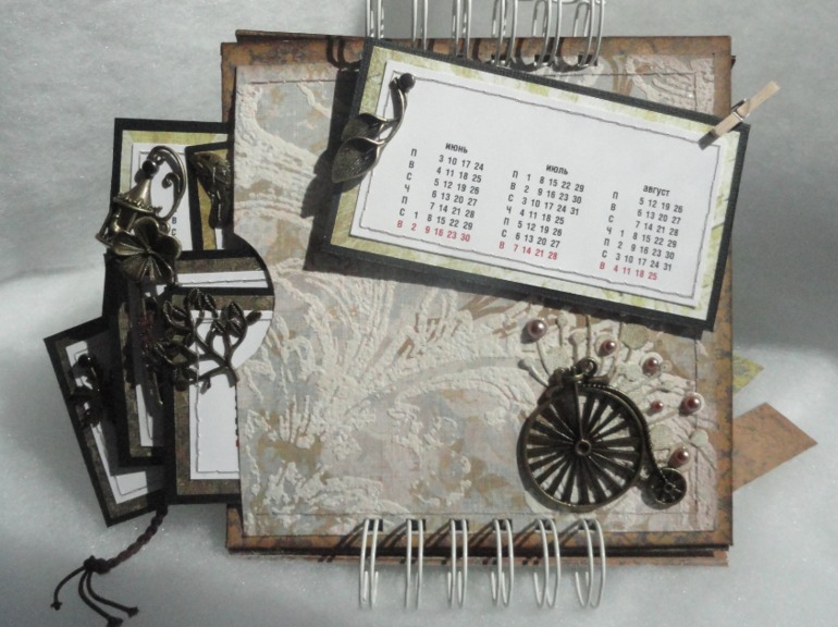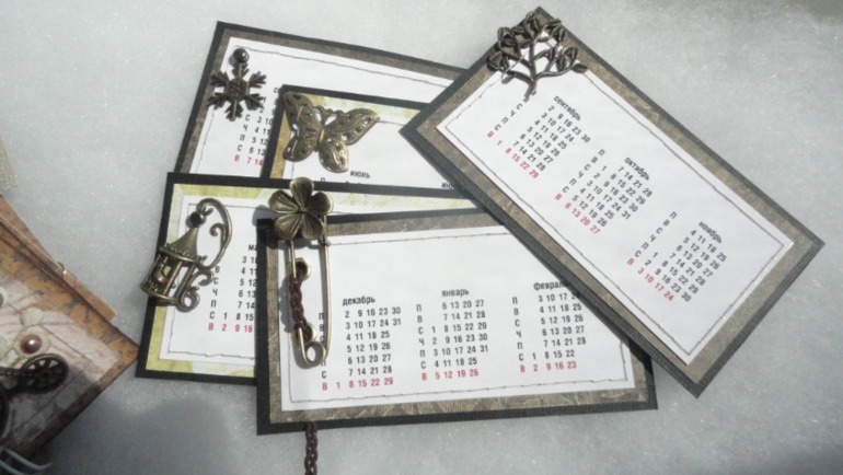 Это сторона с календарем. Календарь в виде карточек лето-осень-зима-весна (календарная сетка до конца 2014 года), на каждой карточке металлическая подвеска