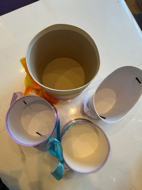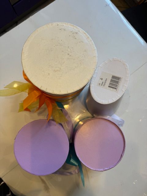 62. Картонные беретки. 3 использовали (я их обратно выпрямила), а 3 нет .