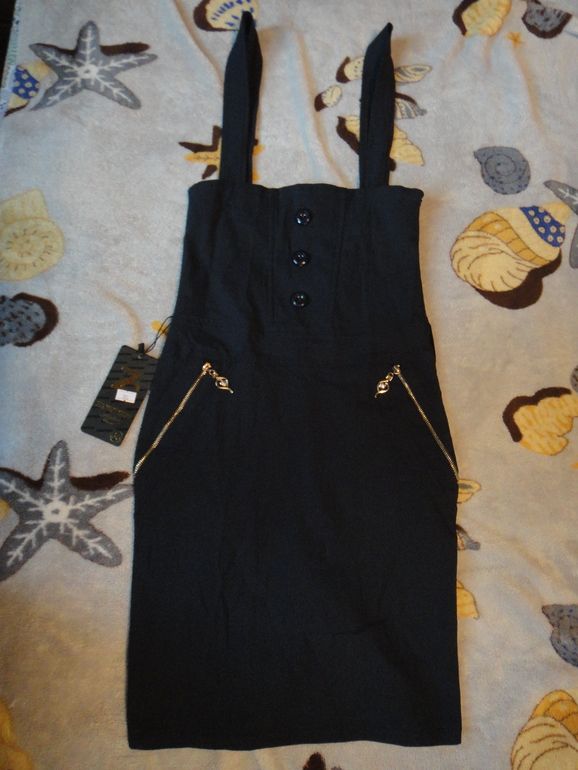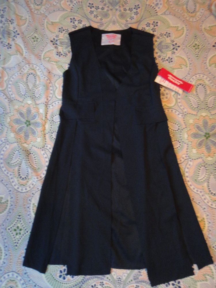 6.Новый школьный сарафан темно-синего цвета, р.38 (на р.140). Бретельки съемные, застежка - молния сбоку. Пуговицы и карманы декоративные. Длина с бретельками - 88 см. Экв. 1400 руб.