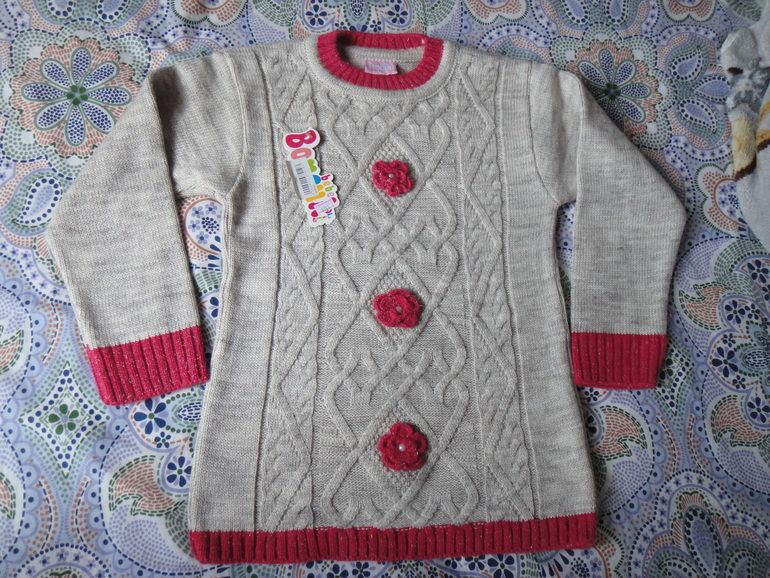 2.Новый свитер Boncuk (Турция), р.9-10 лет (140). Состав: 80 акрил, 20% полиамид. Окантовка брусничного цвета. Длина по спинке - 55 см. Экв. 1400