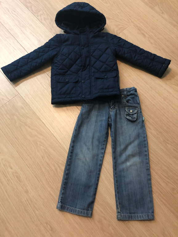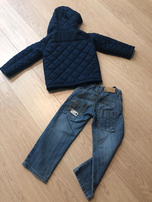 Стеганная куртка р 104-110см бу меньше сезона в идеале Экв. 1300р Джинсы дисней р 110см бу Экв. 600р