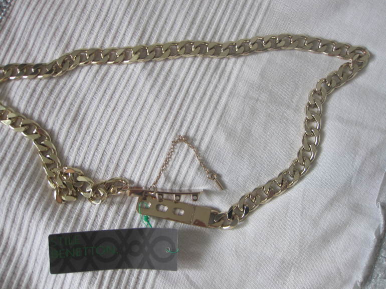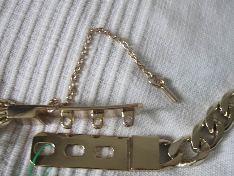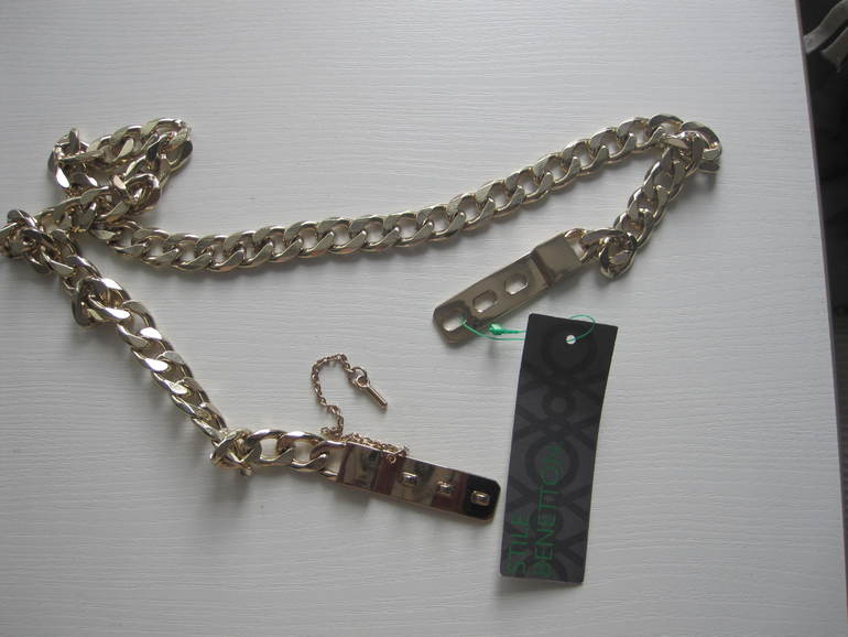 Пояс необычный в виде цепочки с необычным замком. Общая длина пояса 88 см. Привезен из Европы. Экв. по ценнику 2000