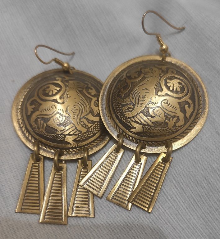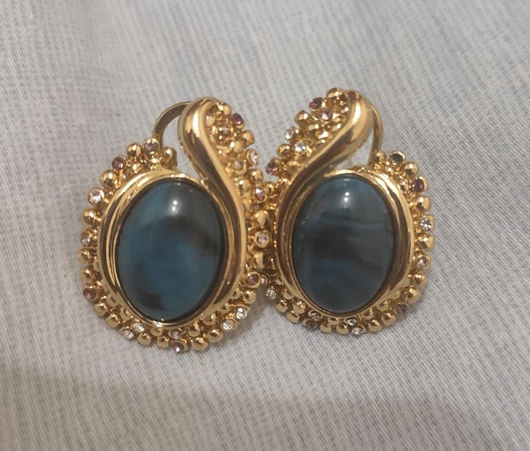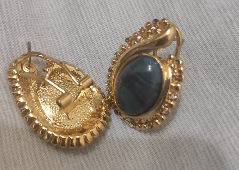 1 - Серьги. Позолота, натуральный полудрагоценный камень. Экв. 1000
