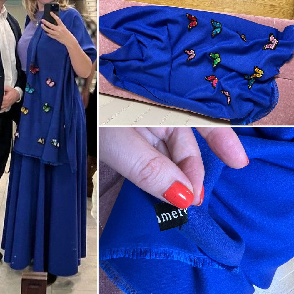 КАшемир 100%, плотный. Большой палантин 70х200 см, бабочки как живые))