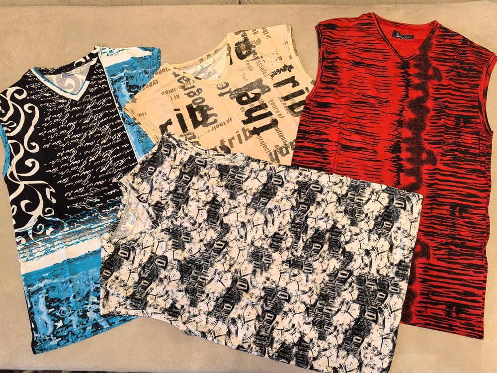 Доброй ночи. футболки остались в расцветке "газета" (на фото вторая слева) вроде, завтра смогу посмотреть. вот маек полно всяких разных