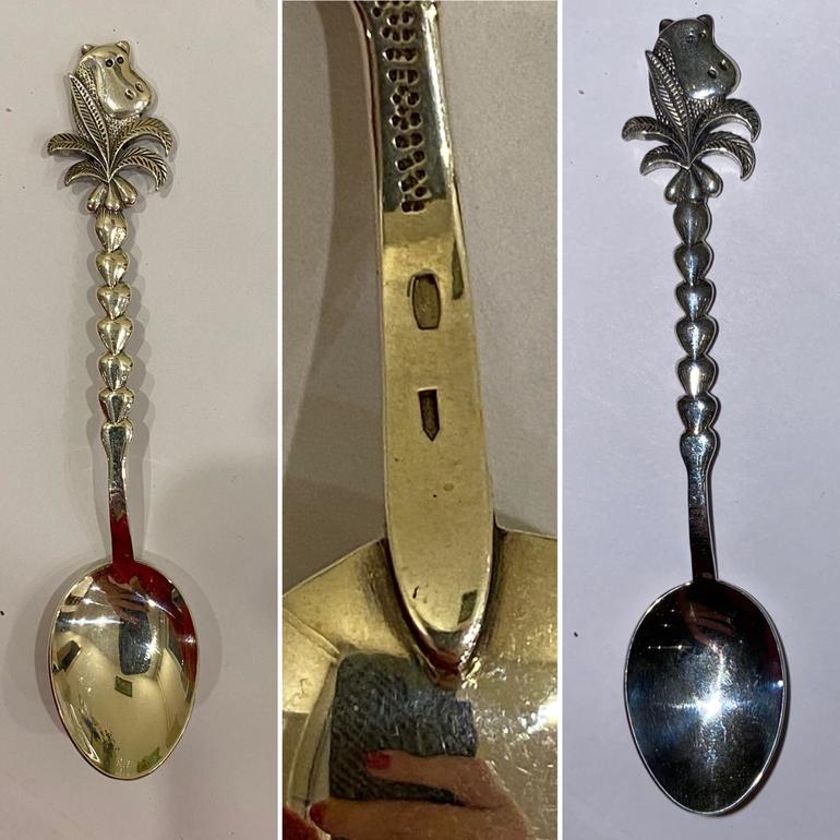 Нижняя часть не золотая, хотя визуально сомневались, очищается от патины до вполне золотого цвета)