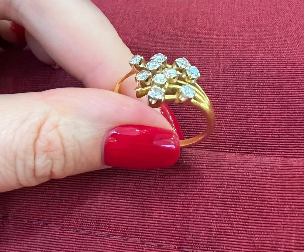 Желтое золото 750 пробы, натуральные бриллианты общим весом 1,1 карат. 10 бриллиантов по 0.11 к каждый. цвет/чистота 4/5 белые яркие камни. Безразмерное (от 17 до 20 размера). 150 тыс. руб. (экв. обговаривается). Обмен на др. ювелирку, лом, возможно технику или сертификаты на технику.