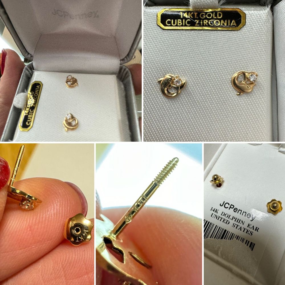 Новые золотые пусеты. Привезены из США. Проба 14к (585). небольшие, аккуратные-идеально для девочки или молодой девушки ( специальные закругленные заглушки чтобы не снимать на ночь можно было)