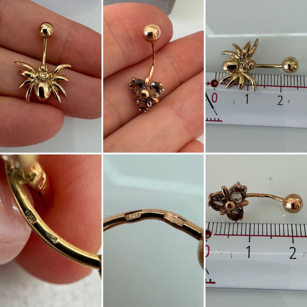 Пирсинг золото 585пр. Паучок около 2 гр,-13 тыс. руб. с топазом -нет