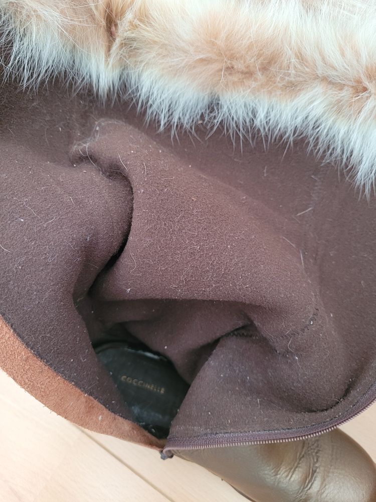 21. Coccinelle оригинал кожа на флисе, мех лисы. Размер 36 или 36,5 подойдет. В целом прекрасное состояние, но на одном мех чуть потерся сзади - фото. Экв 10000 руб.