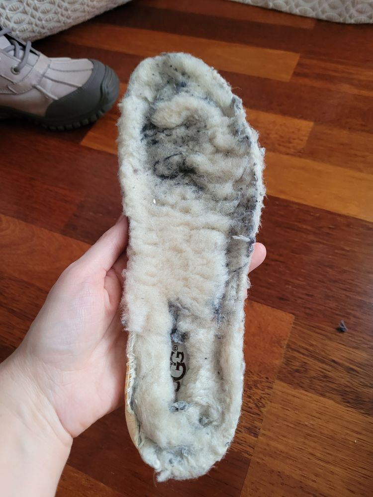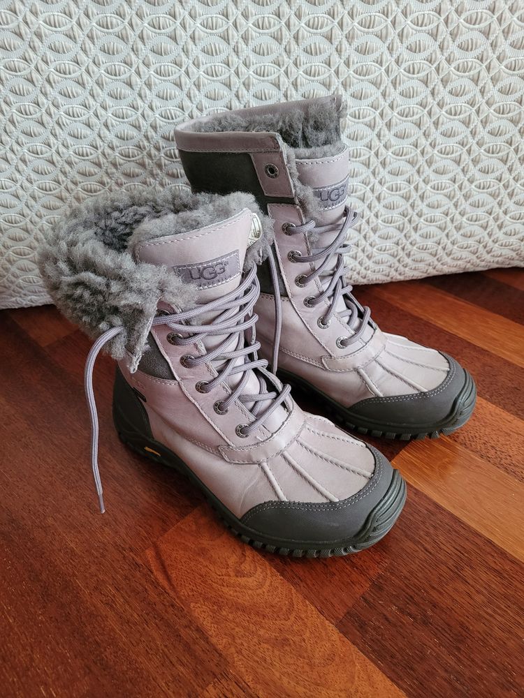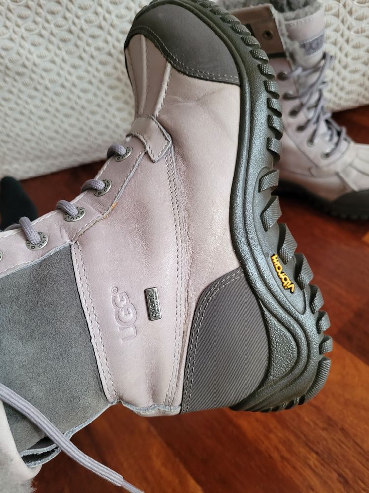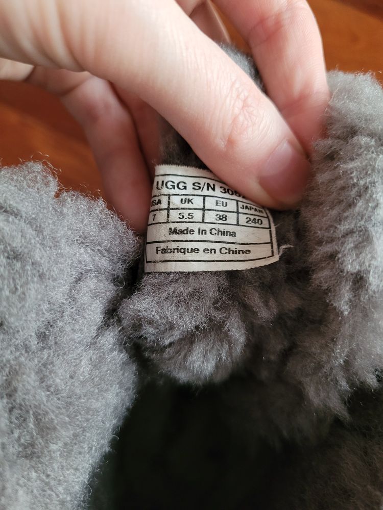 23. UGG оригинал. кожа/замша на овчине. Ооочень теплые. Можно носить с отворотом или поднять. Состояние очень хорошее. Внешне они неубиваемые. Внутри на одной пятке протерся мех - фото. Размер 38, я носила на стопу 24 см. Экв 3000 руб.