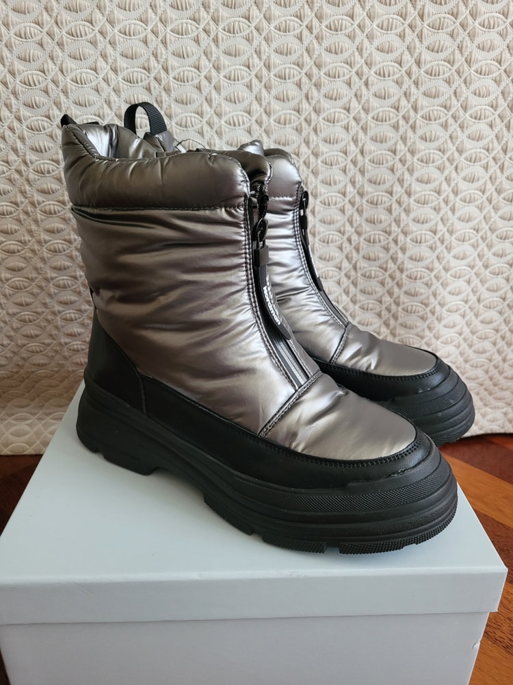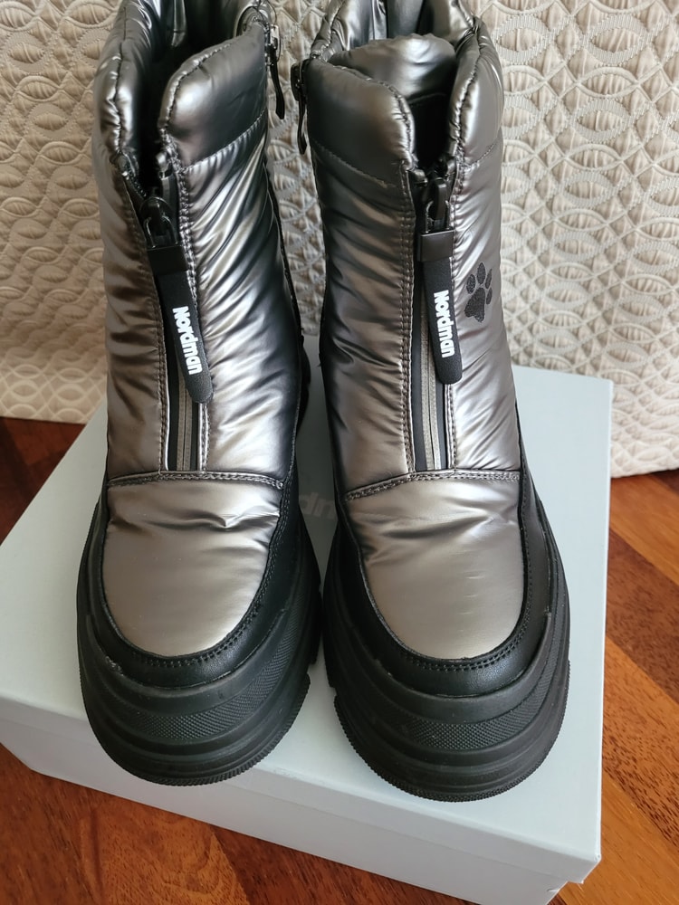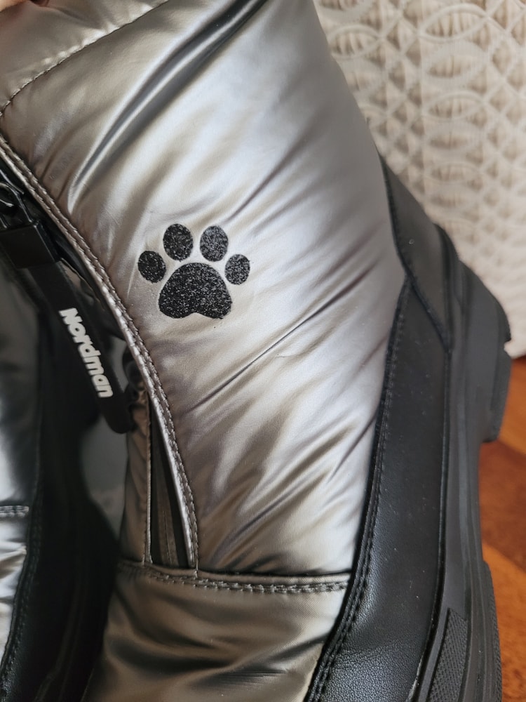 25. Вообще из детской коллекции, но можно и взрослому. Теплые очень, зимние ботинки. Ношены не более 5 раз, но щенок зацепил ткань чуть-чуть. Пришлось термонаклейку приделать - получилось мила даже. Размер указан 37, но стелька от края до края 24 см. На стопу 24 см впритык. Лучше на 23,00-23,5 Экв 3000 руб.