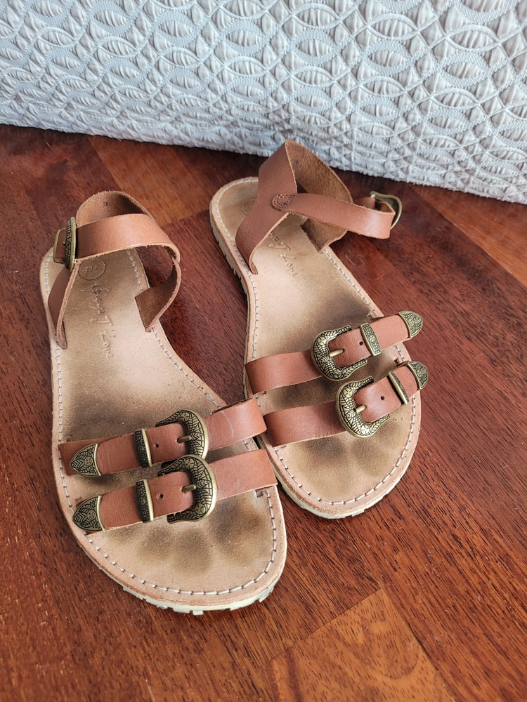 27. Сандалии Испания кожаные. Размер 38, на 24 см стопу отлично. Носила мало совсем, но кожа на подошве окрасилась все равно. Экв 1500 руб.