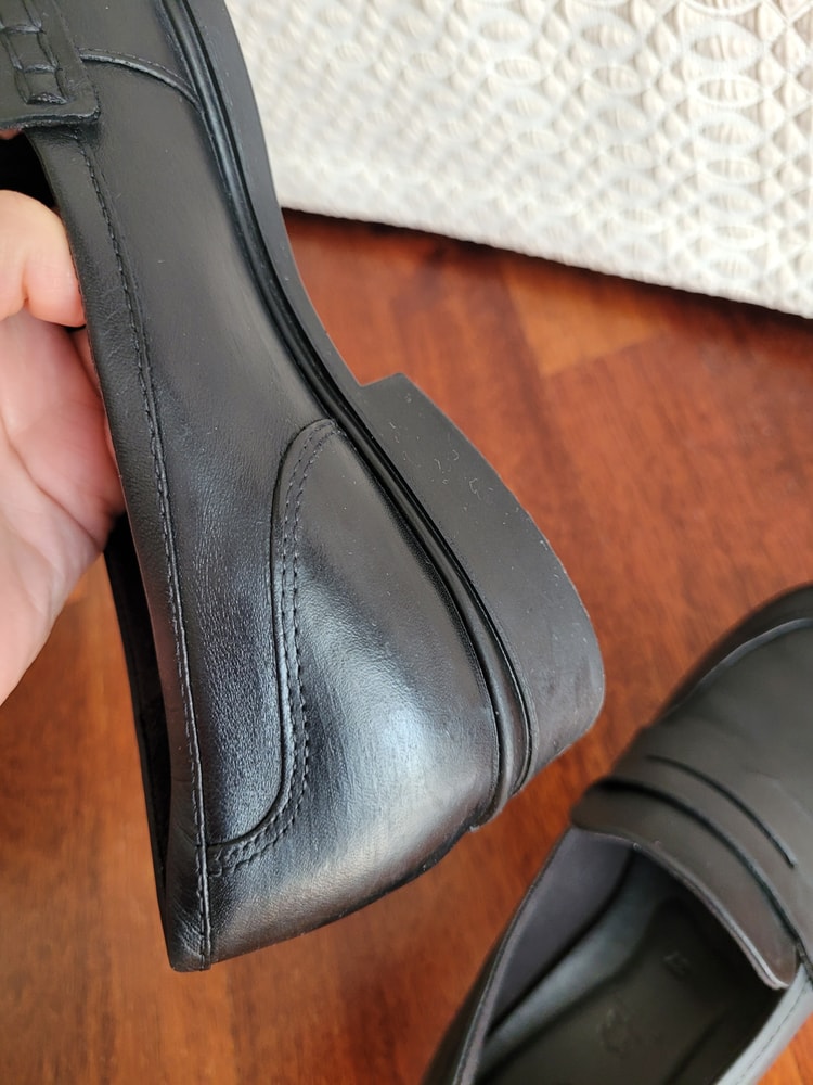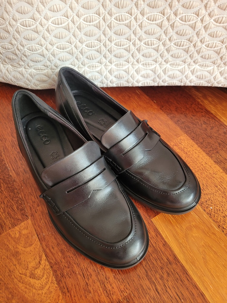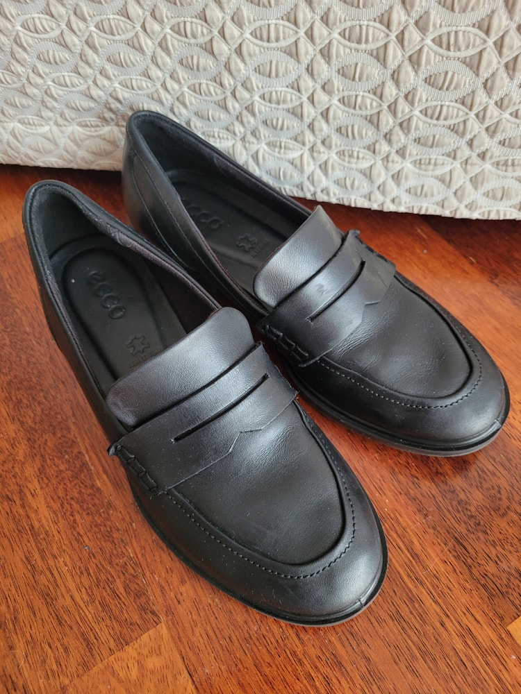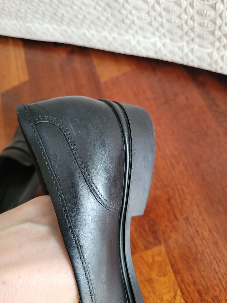 32. Лоферы Ecco размер 37, но лучше на 36. Есть не много потертости - все фото, кроме последнего постаралась все показать. Последнее фото - почищены черным кремом, выглядят очень даже отлично. Экв 7000 руб.