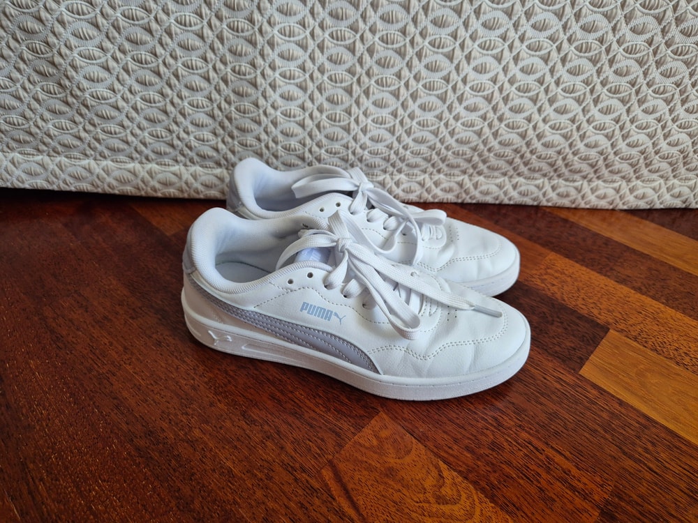 35. Кеды Puma ношены мало совсем. Размер 37,стельку 24,5 см намерила, но она пенная толстая и лучше будет на 36 размер. На 24 см сильно тесно. Экв 3500 руб.