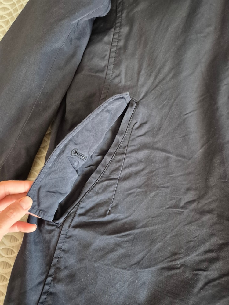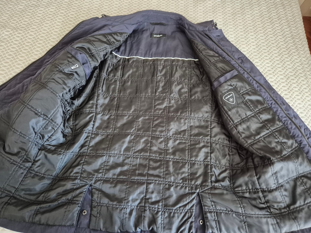 11. Strellson оригинал, покупали в Европе в фирменном магазине. Тонкая, но теплая - муж зимой носил. Был разрез у кармана - в ателье отремонтировали, под клапаном кармана не видно - фото 3 и 4. В целом очень хорошее состояние. Еще можно носить долго. Нужно отпарить, помята после стирки. Замеры: между подмышками 62 см, рукав от плеча 71, от подмышки 50 см. Длина 80 см. Экв 5000 руб.