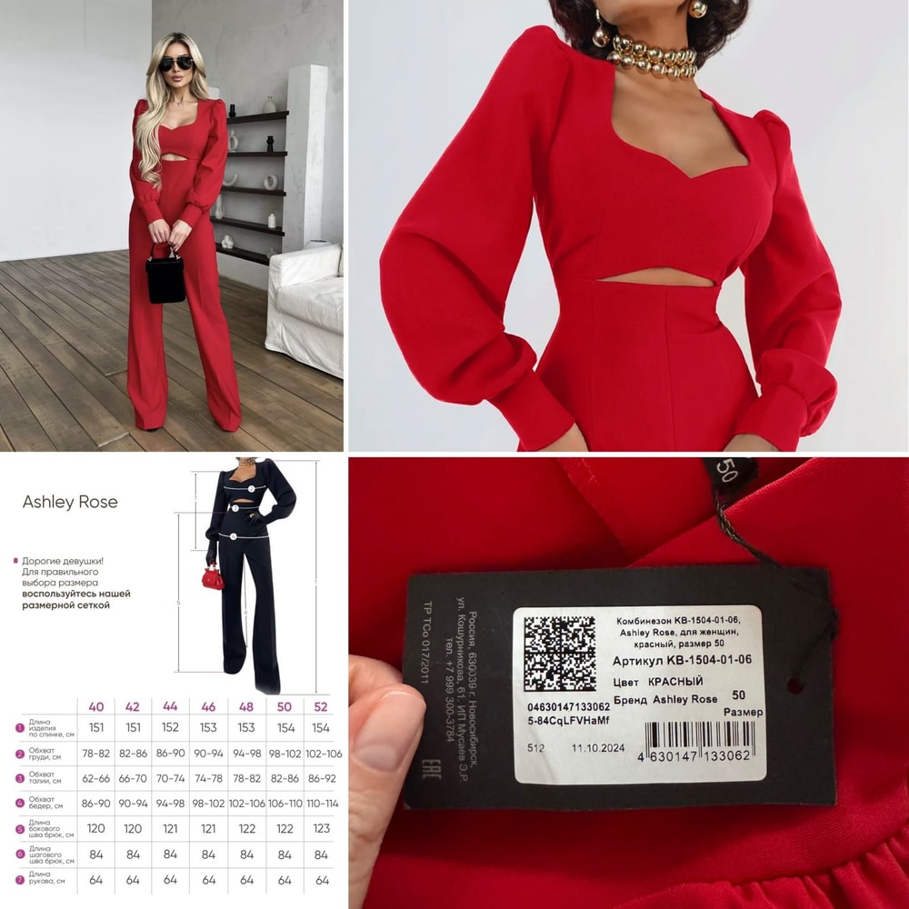 Комбез новый, сидит просто отлично-на рост до 175. Размер 50, очень стройнит. Размерная сетка на фото.