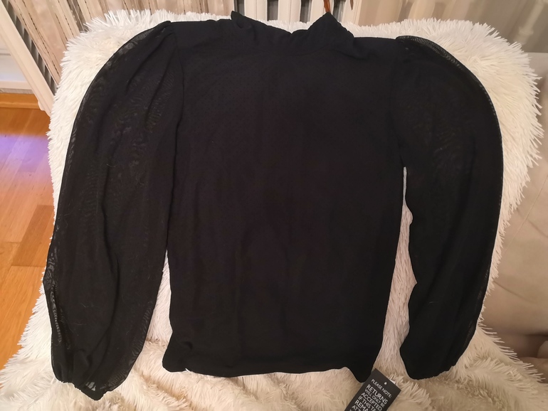 Шикарная кофточка GANNI, новая с бирками. Размер 34 (наш 42-44). Рукава прозрачные, широкие, внизу на резинках. Горловина высокая, как у водолазок. На фото плохо вышла, если надо перефоткаю. Цены на подобные кофточки данной марки 15-25 тыс. Мой экв 15 тыс (условный). При интересном обмене подвинусь, либо подниму в соответствии с вашими.