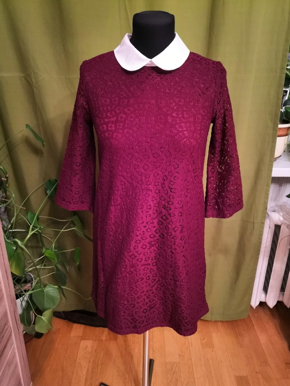 Платье новое на 42-44, рукав 3/4. Двойное - снизу плотная ткань, сверху кружево. Бирки сняла и не носила (по внутренним ярлыкам видно). На фото светлее вышло, в реале темно-вишневый цвет. Экв 400