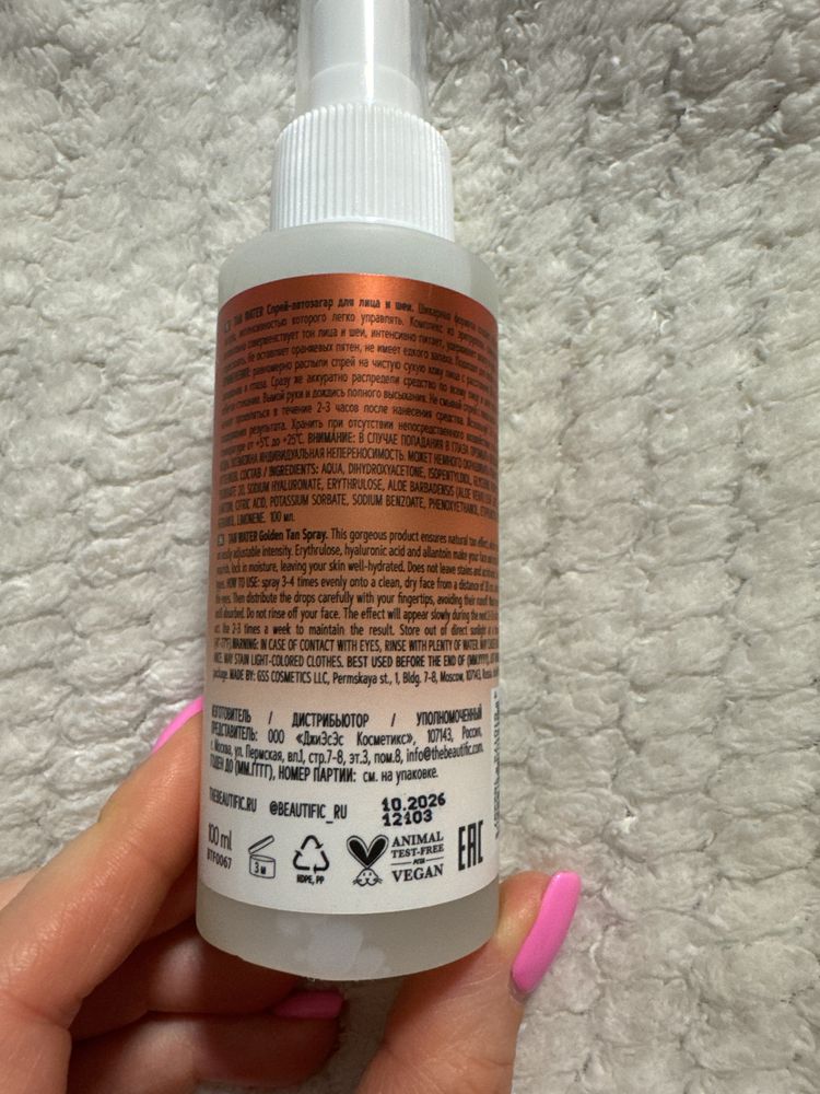 Новый спрей для загара с гиалуроновой кислотой и аллатоином 100 мл . Срок годности до 10.2026 экв 500 руб