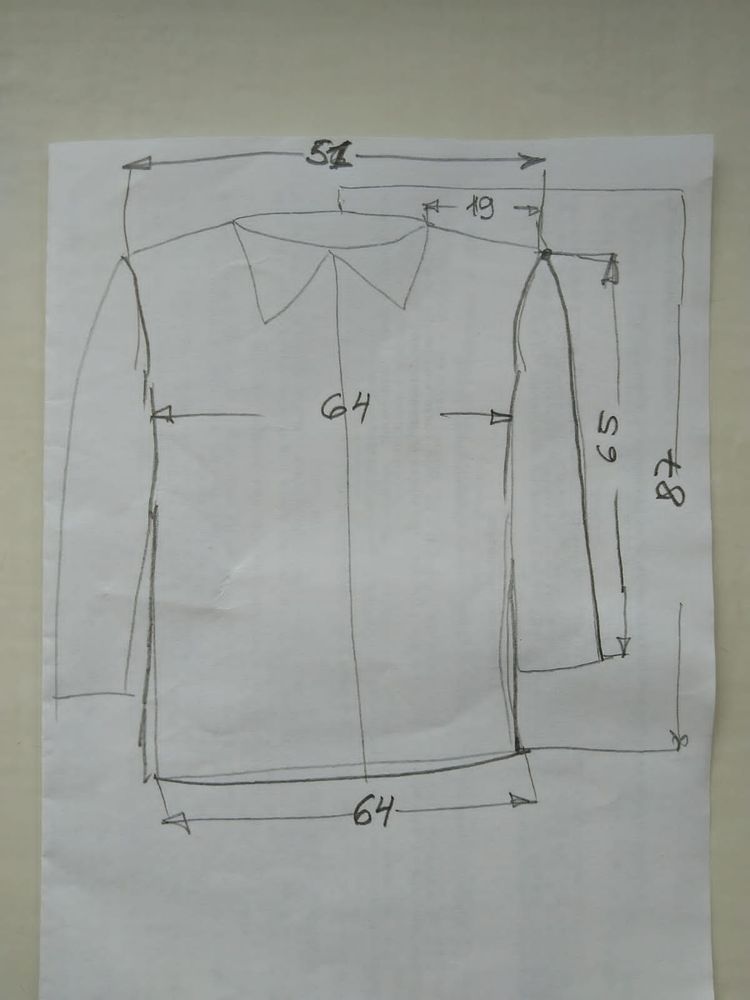 Замеры: длина 62/65 см, ширина между подмышками 50 см, плечи 40 см