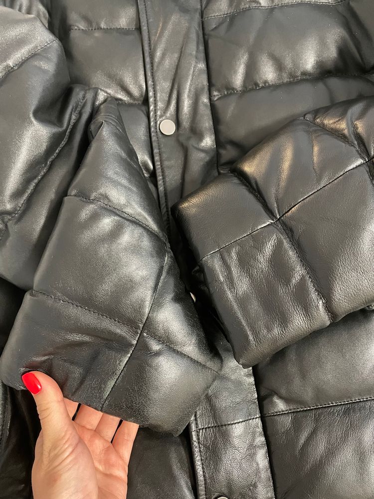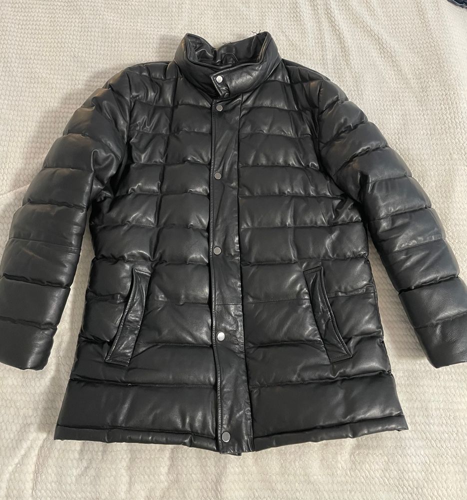 Кожаное пальто пуховик Al Franco. Куплен в снежной королеве за 40000 руб . Экв 15000 руб условно