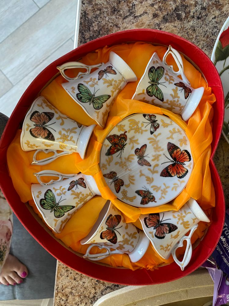 Кофейный сервиз новый, меняла тут, так и не воспользовались. В коробке, но она с пятнами. Экв 2000