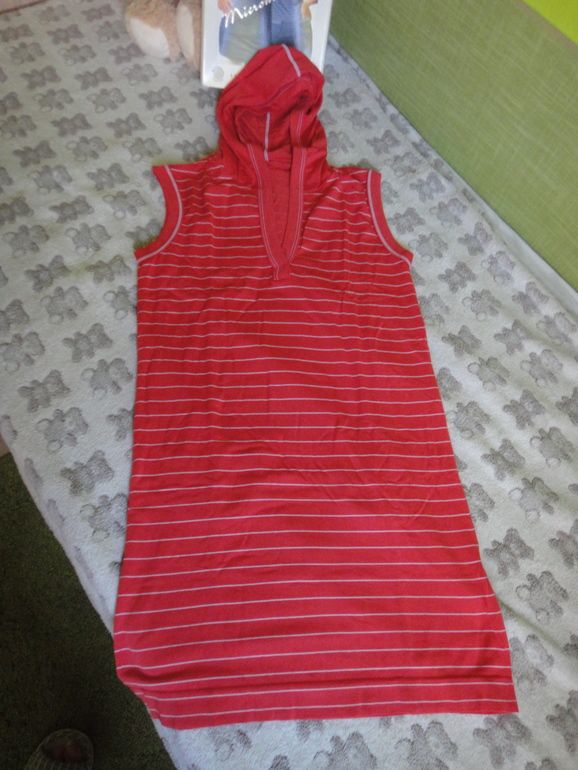 13.Новое мини-платье - туника, р.48 (можно и на 46). С капюшоном, накладными карманами сзади. Цвет - у производителя называется оранжевый, но в реале ближе к коралловому (фото не совсем точно передает цвет). Состав - волокно микромодал. Экв. 2000 руб.