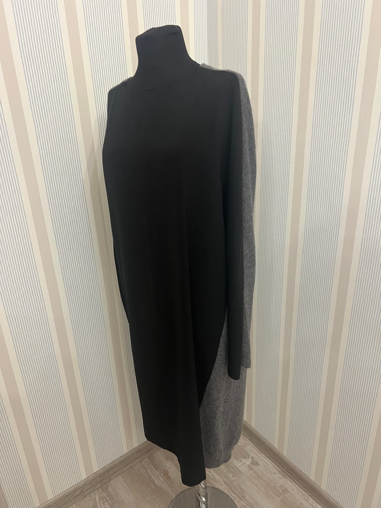 Лена, добрый вечер, это 44/46, длина сзади 70, длинее, чем впереди, ширина 56, но это потому, что пройма рукава спущена, я на 46