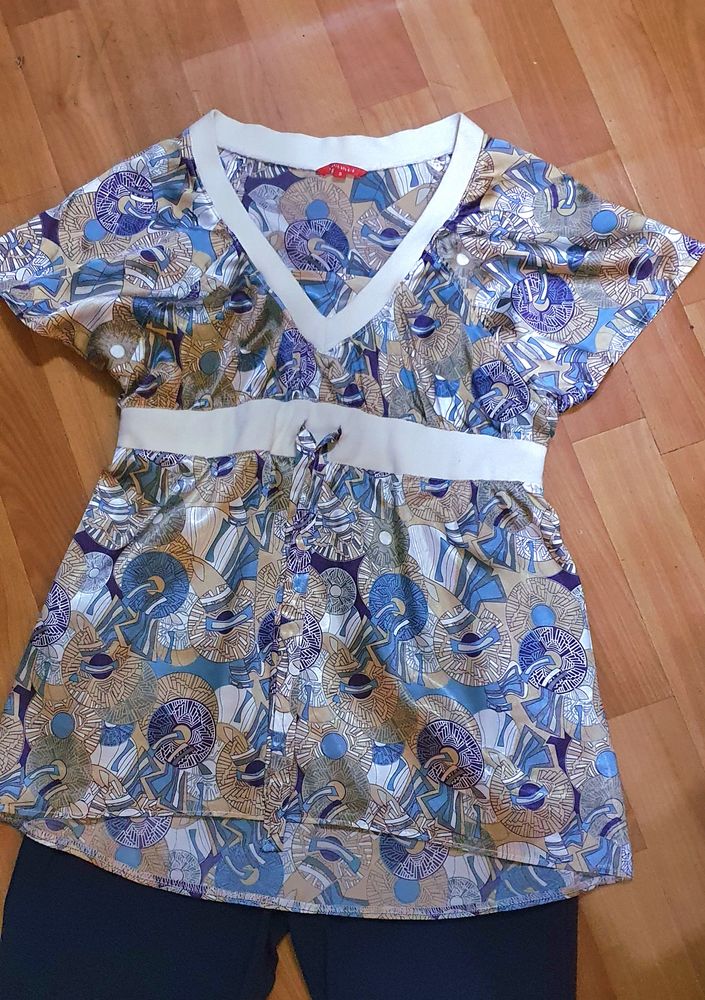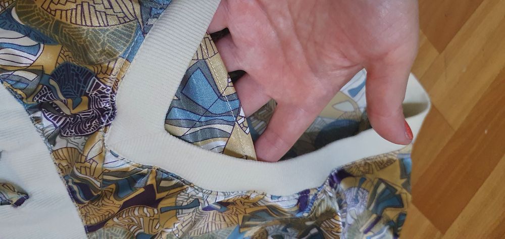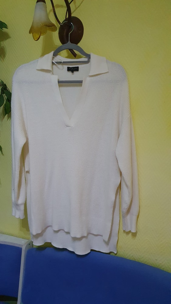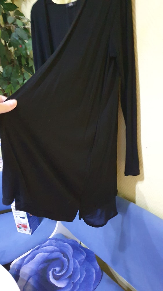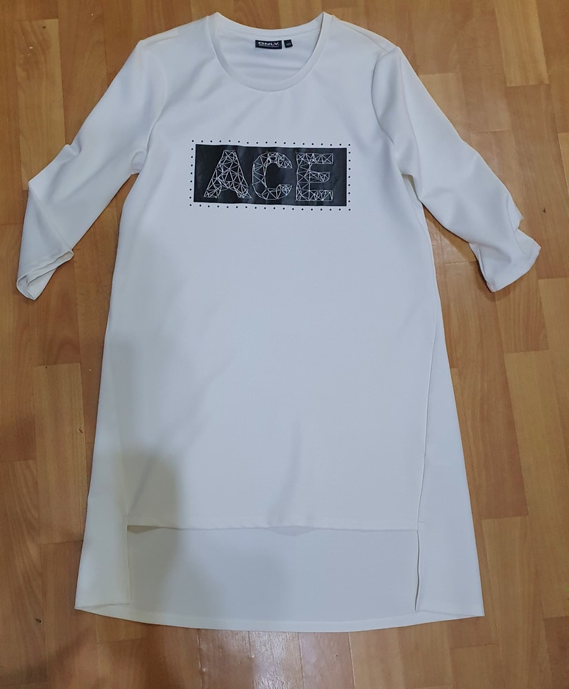 Туника фирменная ONLY, на р 42-44, очень стильная и дорогая вещь, одета 1 раз на тематический вечер, к ней покупала лосины, на фото выше, она длинная , как миниплатье)) весела долго в шкафу и почему-то плечи пожелтели ,сверху по линии плечиков, см .фото((( как исправить не знаю....,может можно нашивки сделать ....с учетом этого экв 500