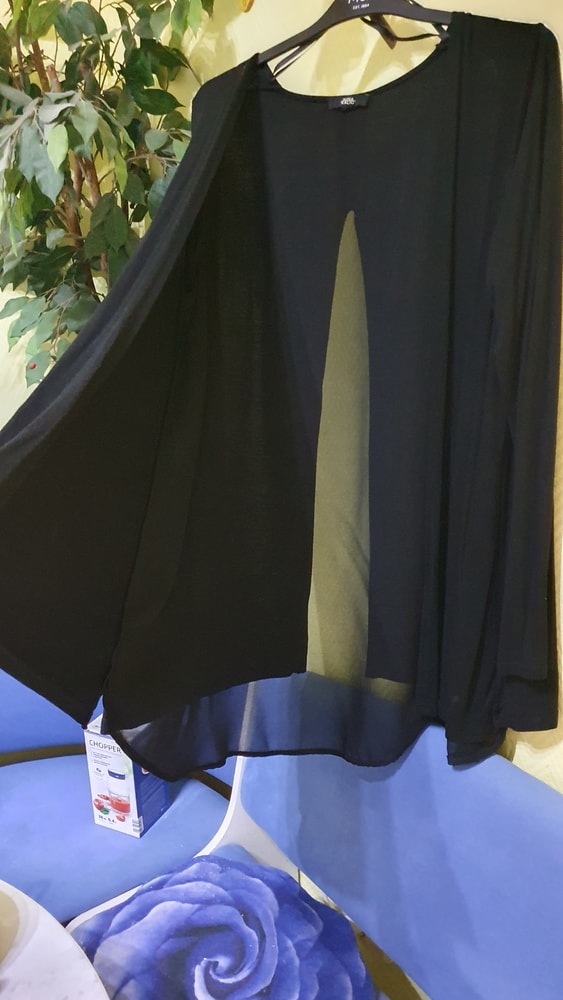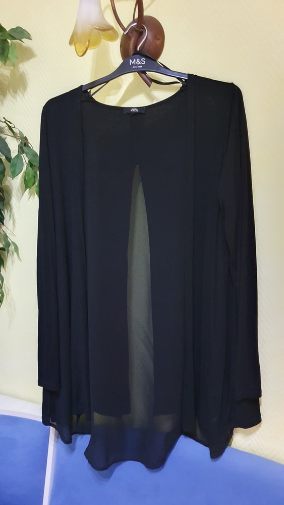 Стильный кардиган,на спине вставка из шифона, куплен в Болгарии ,б\у состояние хорошее, на р от 46-48 можно и 50 размер,свободный крой1000