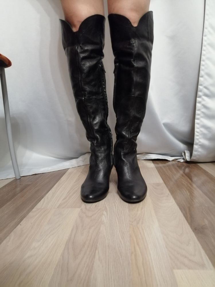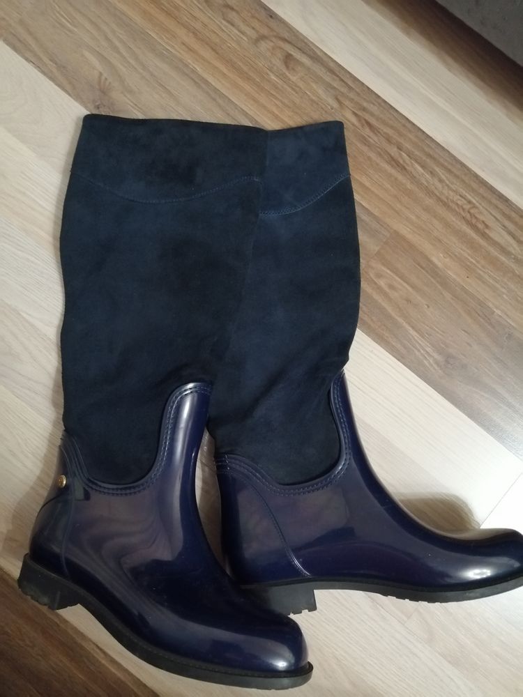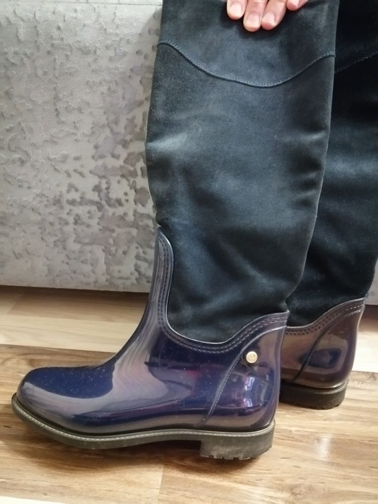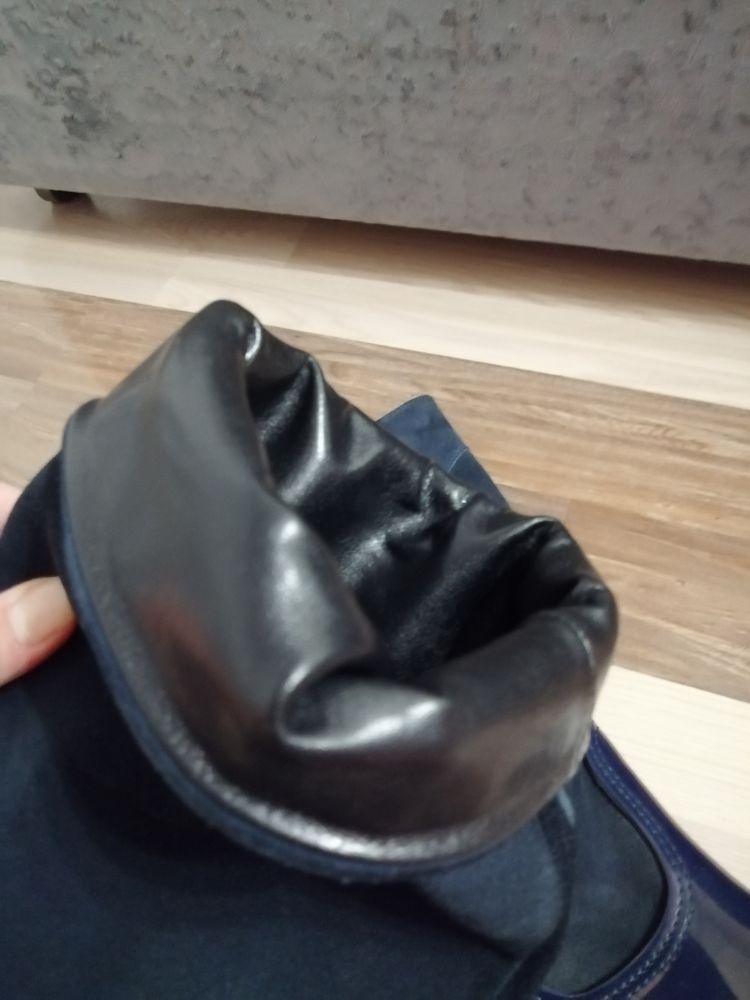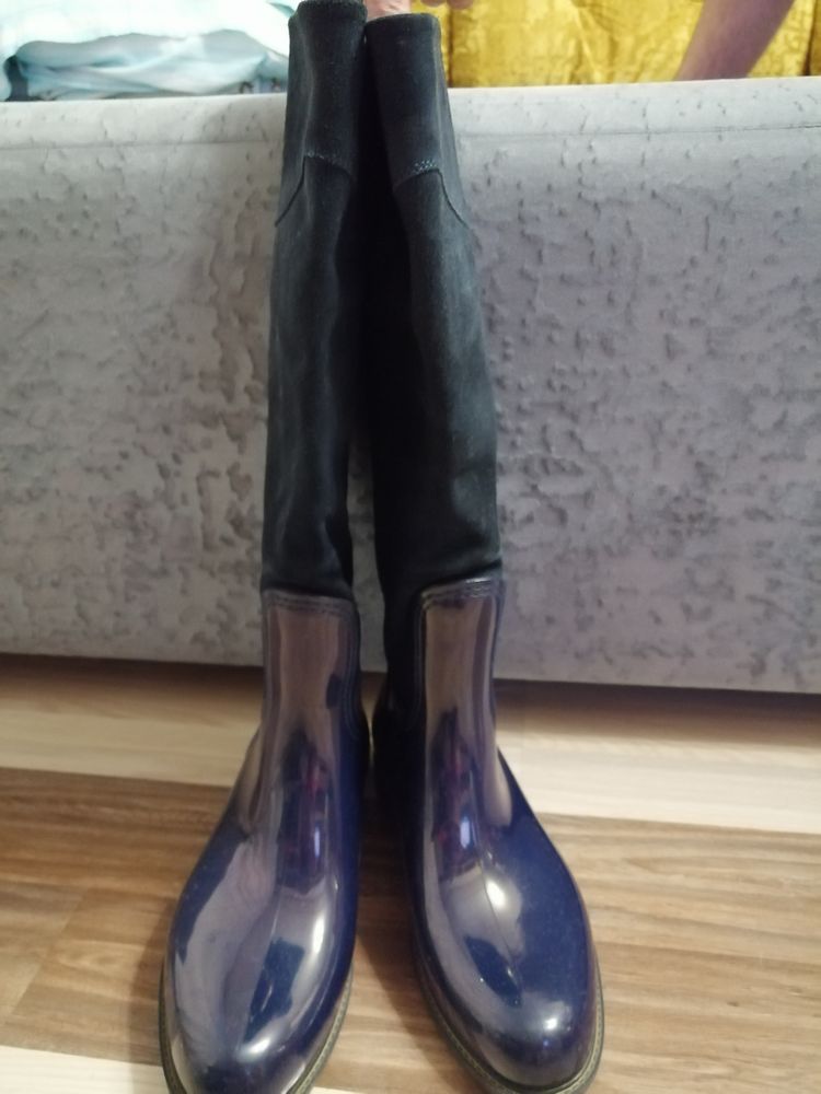 Сапоги-трубы Италия деми (низ ищ резины или из какого-то подобного материала, не промокают вообще) Верх замша, внутри сверху голенища кожа. Размер 38 указан, но мне комфортно было носить на 37 (24 см ступня). Сапоги красивейшие, на ноге настолько необычно, всегда все спрашивали, экв. 3000