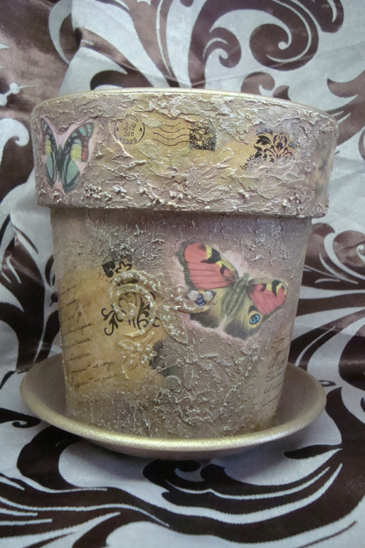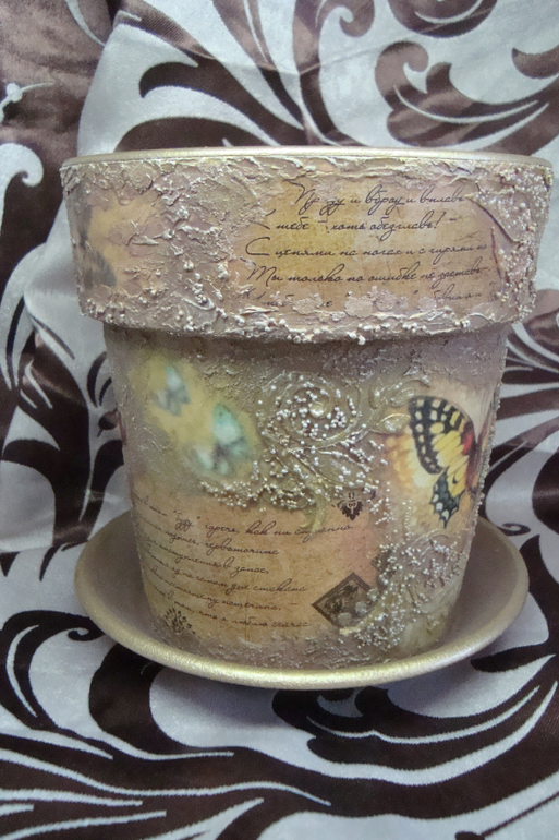 Горшок керамика, декупаж, объем около 700мл., идет без поддона. Экв. 1500 руб.