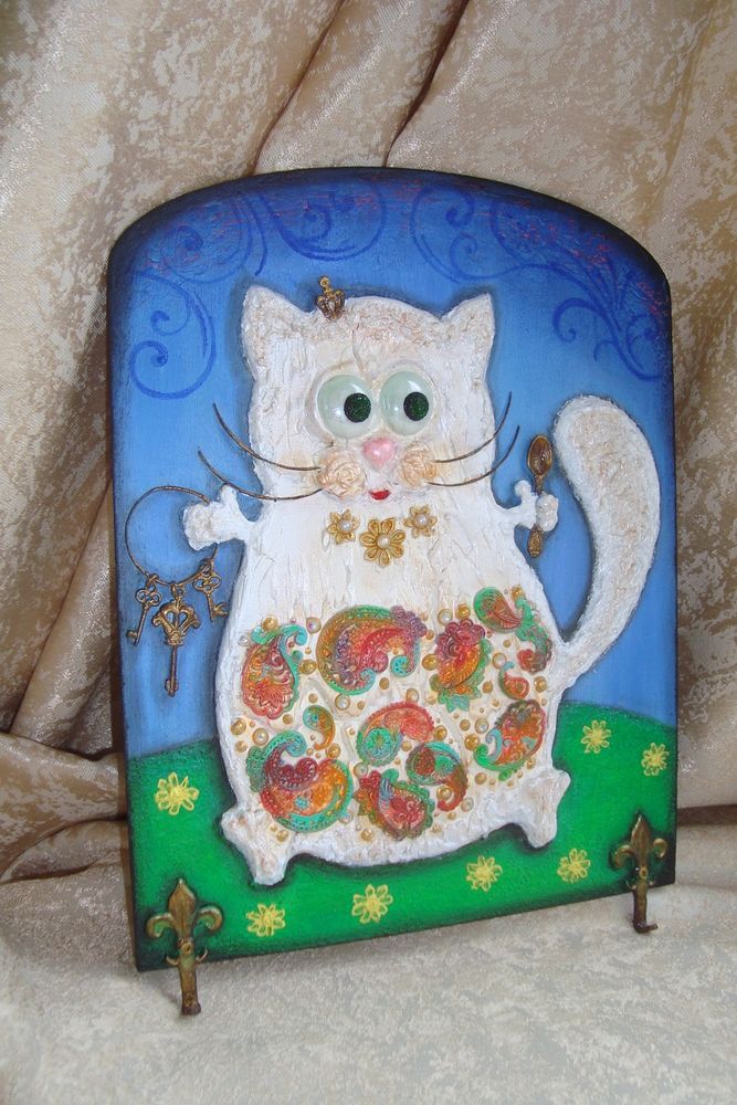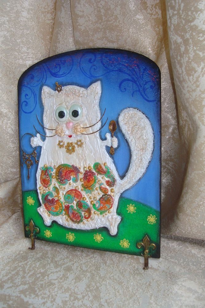 КЛЮЧНИЦЫ-ПАННО с шикарным КОТИКОМ - ХРАНИТЕЛЕМ ДОМА.Ручная Авторская Работа.